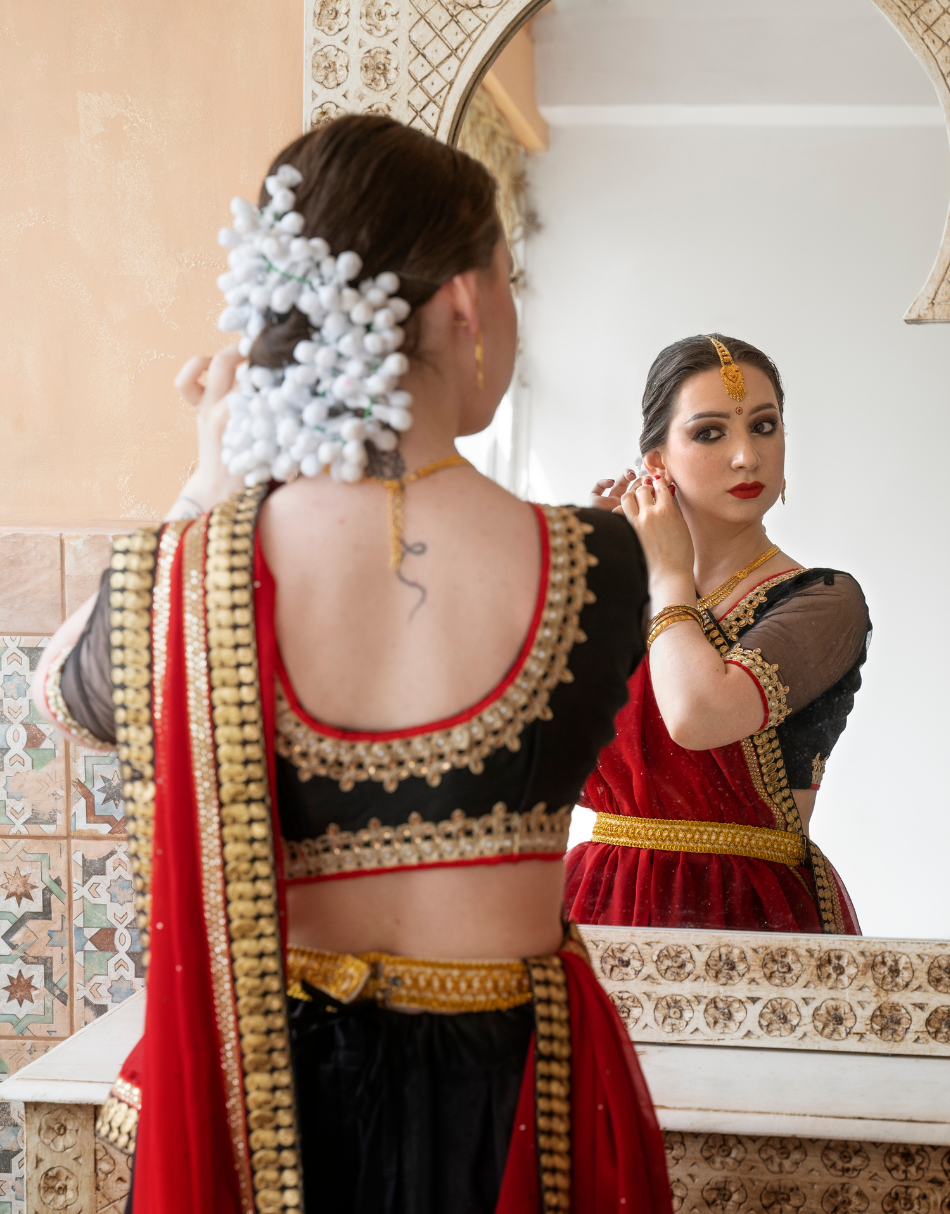 Make a statement with this bridal-style lehenga choli featuring heavy work detailing and rich fabric, ideal for weddings.